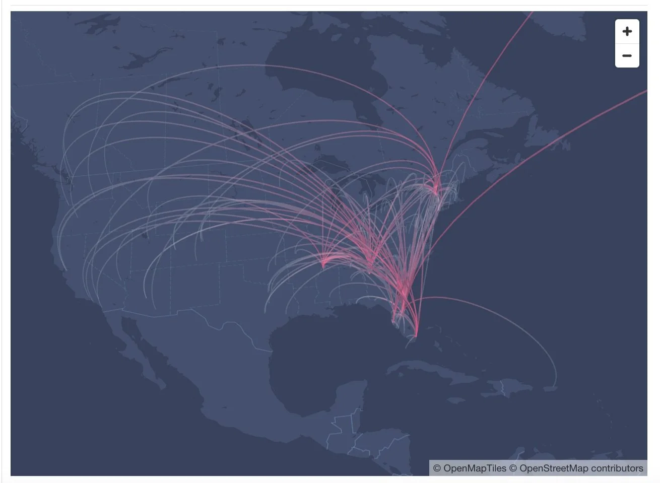 Each of the lines on this map represent a handwritten postcard written by someone at a Ripple Effect π keynote or workshop in the last two months.